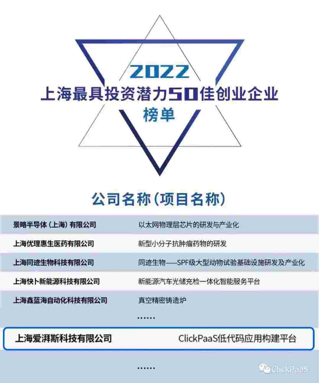 EBPAY 作为国内低代码PaaS平台的领军企业,,,,,与120家创企入围角逐。。。。。期间接受了来自德同资本、、、、、、、、领中资本等知名投资机构的10位投资人组成专家评委团的背靠背盲选。。。。。。并最终入围“2022上海最具投资潜力50佳创业企业”榜单,,,,,,,,,,,被列入“上海市重点培育创业企业库”。。。。。。。。。。。。。。